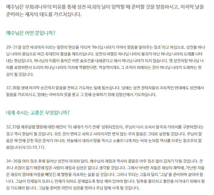 본문 : 누가복음(Luke)21:29 - 21:38 찬송가 328장